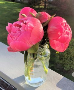 Jar of pink peonies