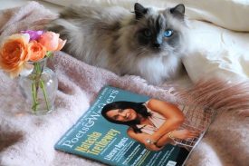 Here’s a picture of Sylvia with the new issue, and a sneak peek at my poem “Grimoire.” (Click on the poem to enlarge for easier reading.)
