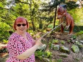 Birthday DinosaursMy birthday has come and gone, and May has begun with moody weather (sunshine, rain, sunshine again, and that’s just the morning). We had a pretty small celebration, just went to Willows Fireside Lounge for dessert and cocktails and to the Woodland Park Zoo for the dinosaur adventure (plus snow leopard cubs!) I loved the educational interactive bits for kids—they could dig for fossils, or experiment with robot servos to see how the dinosaurs move. Robotics and paleontology – sounds like a great combination! Some of the dinosaurs move uncannily when you get close to them, letting out sounds that might conceivably be dinosaur like, and some had feathers and fur and color.