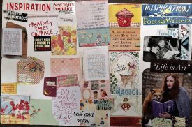 I’m working on a vision board for 2020 and on both of my poetry manuscripts to send out in the new year. I’ve been sick, so extra downtime on my hands has meant a little more time for projects like this. I find it’s very hard to revise a whole poetry manuscript without a pretty significant amount of quiet time to think about it, and like a lot of writers, I like to put out all the poems on the table or floor or wall and see how they work together, or if they don’t. I’m not good at craft-type projects but I continue to try to do a collage project for each year, the idea being to set your inspiration/aspiration for every year. Also very Solstice-y, right?