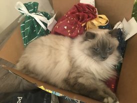 Another is watching Christmas episodes of my favorite comedies, like Community and 30 Rock, and enjoying holiday-themed movies. And reading books of poetry that make you feel happy – even if the poetry itself is kind of depressing – is a really good coping mechanism, in my opinion. Hygge is all about blankets and candles and eating (candy) and enjoying things like board games. Does it work? I don’t know. But it probably can’t hurt. Also cats. Snuggling floofy animals certainly can’t hurt.