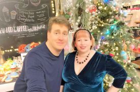 Glenn and I pose at Molbaks in their winter owl wonderland