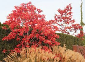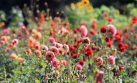 I put up this wreath, and boom! Autumn feels like it’s arrived at our doorstep. I’ve been taking pictures around Woodinville to show that fall color is coming, although the grass is still dry and brown and the leaves haven’t started to change on my trees yet. I also captured a couple of birds – a Steller’s jay and a junco with a sunflower seed in its mouth. The last blooms of September are really something to celebrate – orange dahlias, roses last gasp, vibrant snapdragons, even a pumpkin peeking out or two. These orange dahlias made me want to plant a big patch of orange dahlias somewhere.
