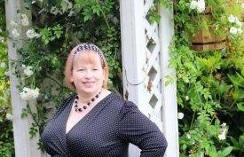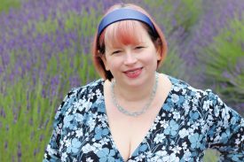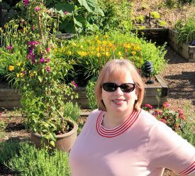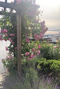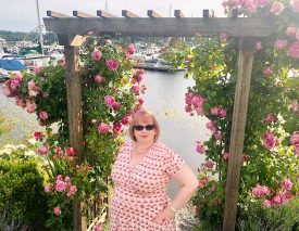 Me with roses and lavender in Kirkland’s Carillon Point Marina
