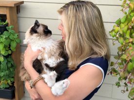 This week has been busier than we originally planned! It was Glenn’s birthday so we went out to listen to live music and stroll around the gardens at Willows Lodge. We’ve had two visits by a bobcat to our back porch this week, as well as new blooming “cherry rose” sunflowers, always elusive-to-the-camera goldfinches, and an infrequent visitor, the Painted Lady butterfly. I’ve also had a poem and a book review published AND went to a poetry reading by one of my favorite poets!