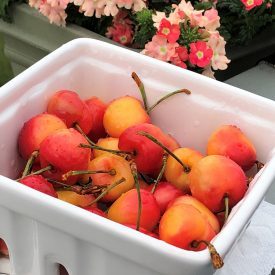 We stopped by a roadside cherry stand yesterday and picked up a pint of Rainier cherries for $4. That is how you can tell it’s summer in Seattle! It may be 60 degrees and rainy, but those Rainier cherries are a beautiful seasonal harbinger. And they are so delicious. I missed them so much the two years I lived in California. California may be the state of fresh produce, but they just don’t offer anything like Washington State Rainier cherries. We cook them and serve them over Greek yogurt for breakfast or put them into muffins or just eat them plain and unadorned. There are almost never enough to make into a cherry pie, believe it or not. These cherries disappear fast!