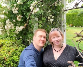 So, we have to remember to celebrate the beauty, the kindness, the love, and the poetry in our lives. Here’s a little picture of Glenn and I twenty five years ago. They threw rose petals instead of rice. I’ve been growing roses every since.