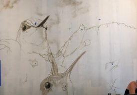 Here are a few pieces I thought were pretty interesting. “The Sodden Hearts” by Syd Bee (very Seattle appropriate, I thought) and Kari Lee Alexander’s “The Dreams We Consume in the Depths of Our Hearts.” And an artist was in the process of covering one wall with a very cool hummingbird mural. Worth checking out!