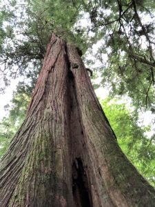 Vertical picture of gigantic evergreen tree at Ollalie State Park