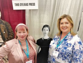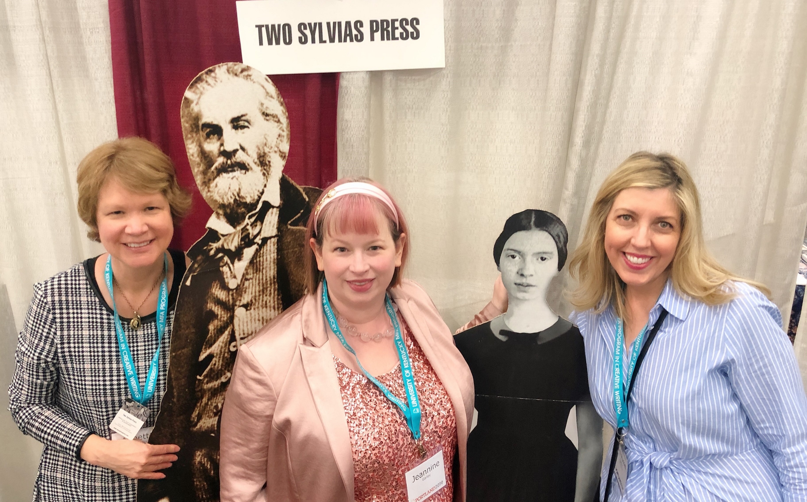 With my lovely editors Kelli and Annette at Two Sylvias Press and Walt Whitman and Emily Dickinson