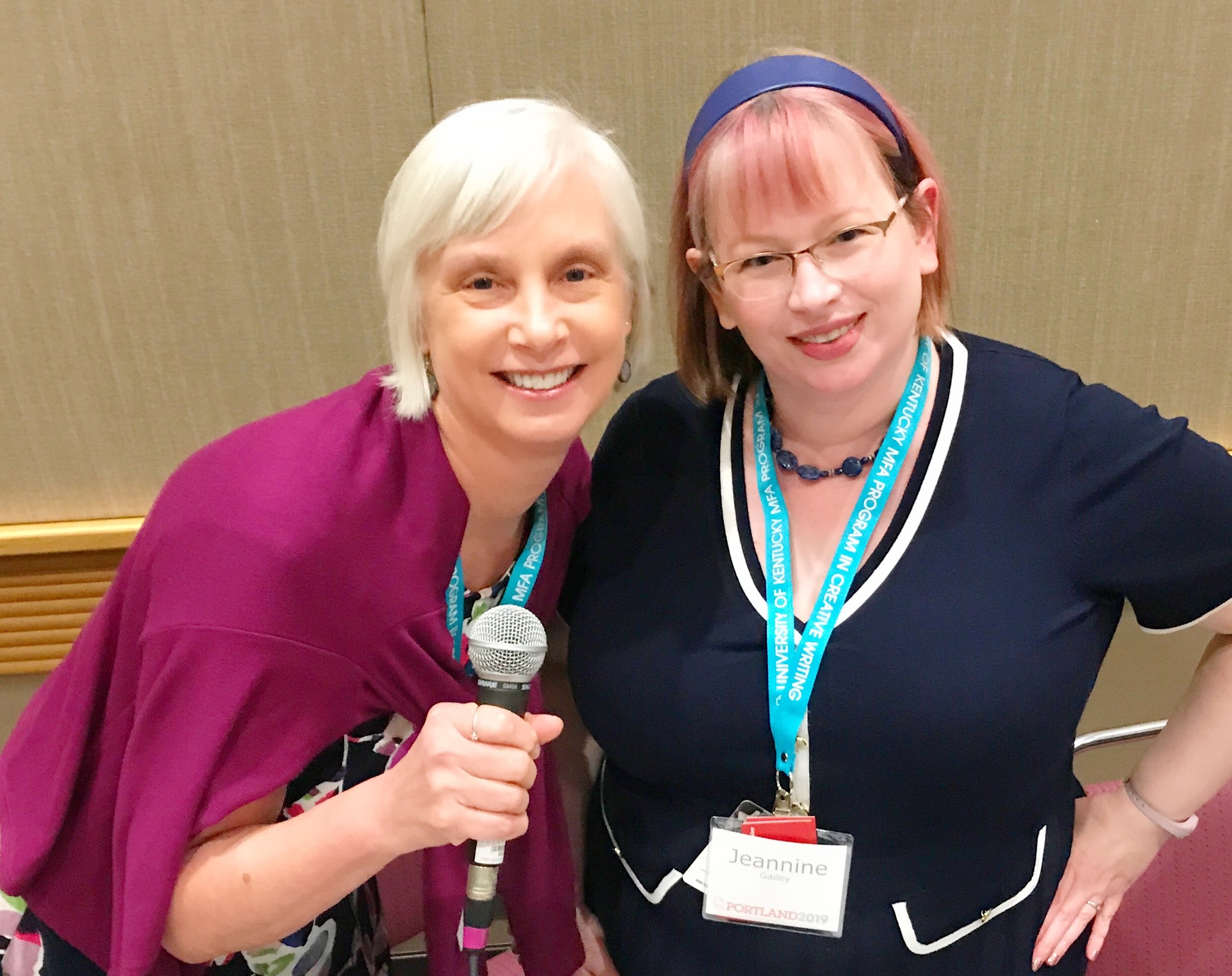 Day 1: On day 1, we drove in from Seattle, got our hotel room (there was a snafu with the accessible room I’d booked months in advance not being ready, so we had to switch to a “regular” room, which cost us time), literally sprinting to try to get to registration on time, and try sprinting with MS and a cane. It’s hard! There was no space to drop off a handicapped person at the Conference Center because of construction, and no handicapped parking spaces available around or in the garage, and once you got to the entrance, it felt like a half-mile of dim, dusty, not well-signed corridor to get to the registration, bookfair, or panel rooms. Note: I would love it if AWP could book a place that’s not under construction. I stayed in a hotel across the street from the conference, but had to use my wheelchair over construction-non-sidewalk for five blocks to get to it, because, you know, construction. During my panel “Poetry and the Body,” on the last day of the conference, the moderator Peter Gloviczki, said, “I never feel more disabled than in the airport.” Which felt very true. What struck me as true as well – I never feel as disabled as at AWP. They really need to hire someone in a wheelchair or other difficulties walking to test out venues ahead of booking them, and make sure to have adequate handicapped parking, accessible drop-offs, registration right at the entrance, etc. At home, I feel great about walking around with a cane, even going to parks, gardens, museums, but there was no way I could have done this convention without a LOT of help from my husband Glenn – driving, parking, carrying things, getting doors, pushing the wheelchair when I needed it – and I needed it a lot. (I don’t use it much at home.) It was so far from the entrance to registration that even “normal” people were complaining about the walk, so it was extra hard for anyone with a disability.