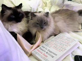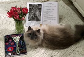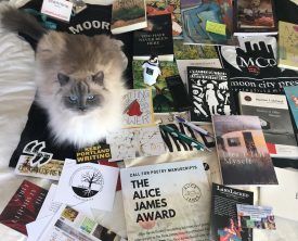 Kitten Sylvia with Lee Ann Roripaugh’s new book