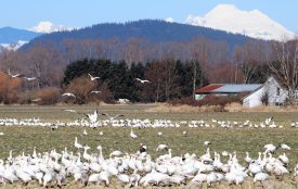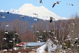 Snow Geese in Flight with Mt Baker
