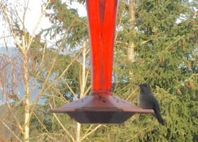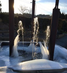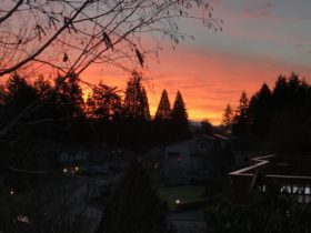 And here are some nature photos from this last bleak week of January in the Seattle area – a sunrise and a creek with a windmill.