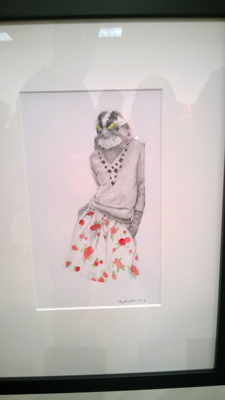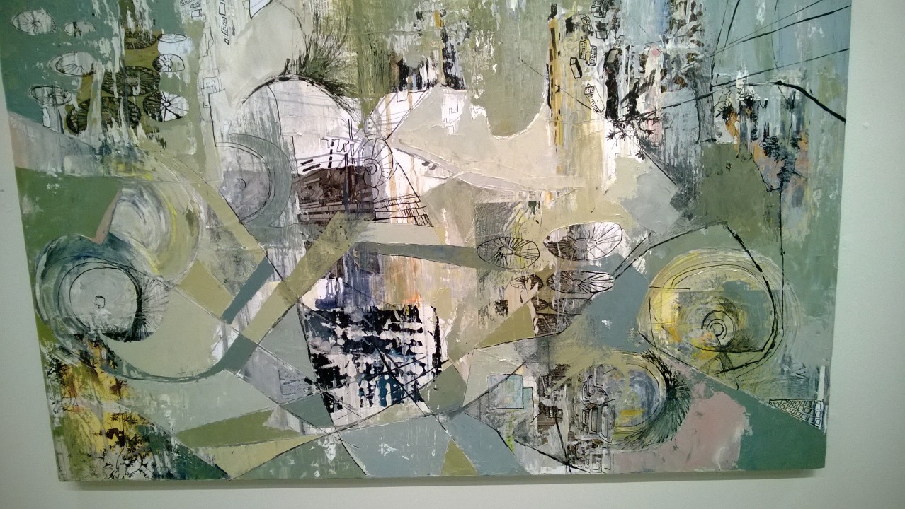 On the plus side, I was feeling very lucky Saturday night to be at VALA, at a place celebrating art and poetry in the middle of the East side, in Redmond! Their “Art is Me” show is up and all the art is by their volunteers, and it’s probably the best show they’ve had so far. There was so much good stuff, you really should go see them for yourself, but here are a few samples (the bird-headed girl is by Susan Rotondo, the mural is by Anna Macrae, and the black-and-white piece titled “Science Fiction”is by Marianne Johnson: