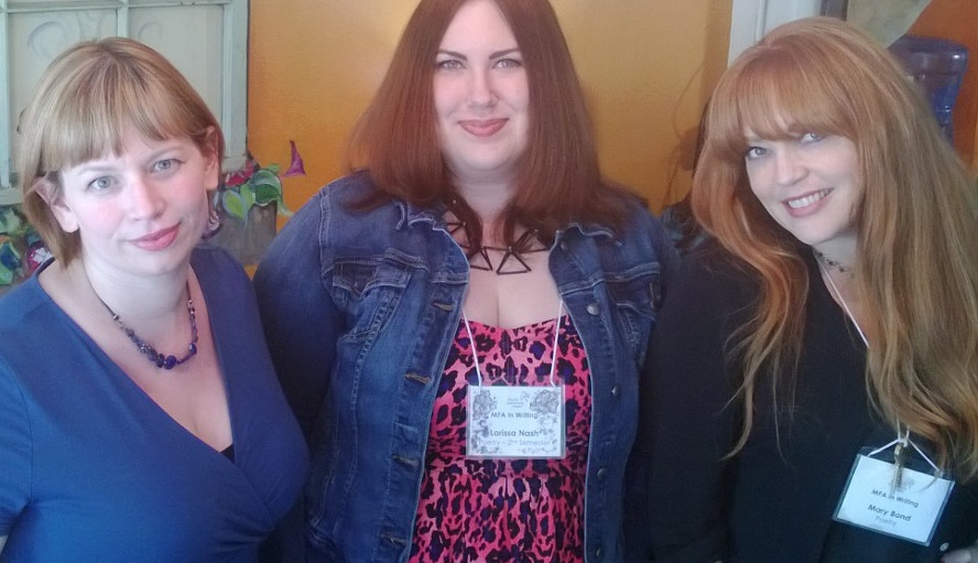 Below, pics: a trio of redheaded poets (Mary Bond, Larissa Nash, and myself) – me with Joe Millar and Dorianne Laux – and posing with Twitter friend Killian Czuba…