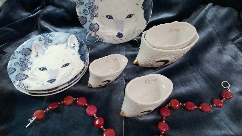 First of all, I want to thank my husband and his keen gift-getting skills for this little load of thoughtful (and cute!) gifts: a hedgehog set of measuring cups, a set of arctic-fox and snowflake canape plates, and a carnelian necklace (carnelian is supposed to be good for healing! I hope it works!)