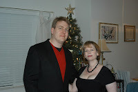 And this is a little picture of Glenn and I all dolled up for the night with our Christmas tree in the background. Glenn's work party had lovely gluten-free dishes this year, and a band, in comparison to totally cutting the holiday party last year, so maybe his company is doing a little better? One can hope. Maybe it's a good sign for the economy. Anyway, I had fun and even was tempted to get on the dance floor...