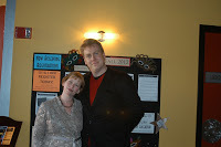 --I was very thankful for my friends and loved ones who came and helped out with the event. There is no way an event like that can be successful without, say, a husband who helps sell books, a friend who pours drinks, etc. I'm a pretty good people-person, but after the reading I was overwhelmed just trying to talk to folks and sign books (I hope I was coherent!) so I was really grateful for the support.(Thanks especially to my husband Glenn and my friend Annette Spaulding-Convy, pictured below)