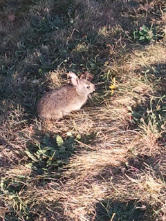 The hummingbirds are hummering around outside my window after yet another beautiful sunny day, while I am recuperating from last week's excitement. And, to cheer you all up, here's a picture of a local tiny bunny (we've been watching it since it was the size of a peanut, so we call it 'nanobun' or 'peanut') for absolutely no reason!