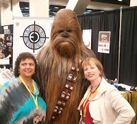 Two great meetings - the artist behind several comic books and the beautiful graphic novel relaunch of The Last Unicorn, Renae De Liz (check out her great rendering of Wonder Woman and the Womanthology, a collection of women comic book artists' work she put together - a gorgeous hardback books with proceeds going to charity - from female artists, ages 7 to ninety something. There's something incredibly beautiful about an anthology so inclusive, so lovingly put together. The other really exciting encounter for me was chatting with Buffy (and Once Upon a Time) writer Jane Espenson, and explaining to her how last year at the same con I was interviewed by a news-person who mistook me for her because we had signings at the same time. (All writers look alike to the media, I joked. Which might be sort of true.)
