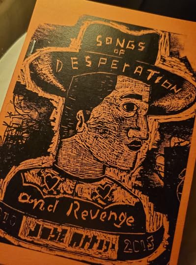 At long last, Jose Pepe Arroyo’s book, SONGS OF DESPERATION AND REVENGE made its way into the world (and quickly sold out). Arroyo has been involved in the small press, both writing and also making beautiful woodcuts, for years now (he did some art for a couple of Ridgwell books, and TACO FAIRY), though he remains relatively unknown. If you enjoy my work, you may well enjoy his...so, if you don’t know him, here’s a small introduction.