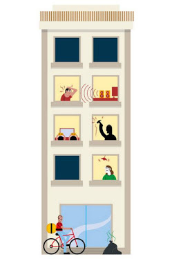 Passei por algo assim onde moro. Morador ou moradores de um andar faziam reuniões que se estendiam até altas horas da madrugada com música e conversas animadas, janelas abertas como se somente eles morassem no prédio.