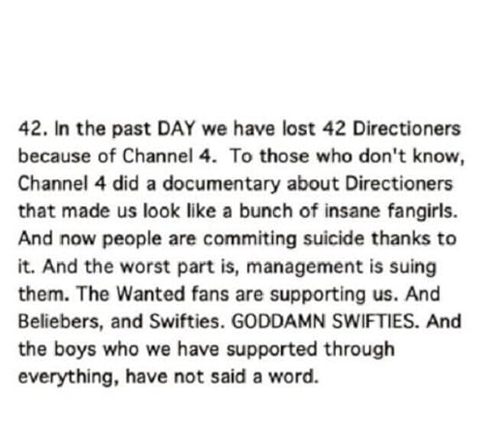 For people on Twitter, please check out the most hilarious hashtag in the world: #RIPLarryShippers. After Channel 4 aired a documentary about "crazy" One Direction fans the other night, rumors started spreading that a girl who wrote fanfic about Louis Tomlinson and Harry Styles of the band killed herself. Then it was three girls. Then nine. Then fourteen. It leveled off there for a while. Then it's 42. It shot past fifty for a bit and hit ninety for a few glorious seconds, but then the group hysterics realized that didn't sound legit and it crawled back down to 42. Then of course, the rage turned against the band: