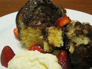 Sauce methodPut brown sugar, butter and sifted cocoa in a bowl. Pour boiling water over, stir to dissolve.