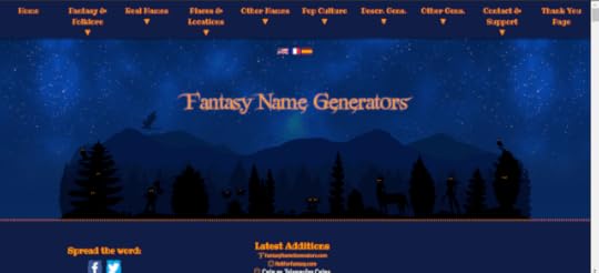 Es una p��gina que te genera nombres fantasiosos para tus libros de fantas��a, tambi��n nombres reales, nombres de lugares, otros nombres y nombres de cultura pop; es decir, tipo nombres de personajes como Pokem��n y otras car��caturas o animes que ya existen y tiene infinidad de temas para conseguir nombres. Y no solo eso tiene este sitio, sino que tambi��n, cada vez que utilizas 5GB de esta p��gina o est��s utiliz��ntola como tambi��n ves los anuncios, estar��s aportando a la donaci��n de plantaci��n ��rboles que el creador hace junto a la fundaci��n Eden Reforestation Projects y d��ndole clic pueden saber m��s sobre esta buena causa.