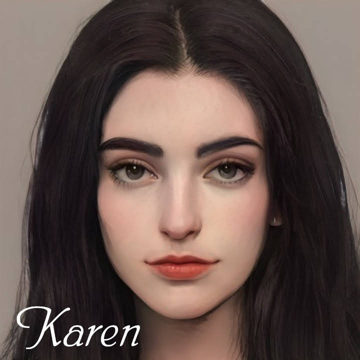 Nombre del personaje: Karen GutiérrezEdad: 21 a los 26 añosPersonalidad: Es la más tierna y callada del grupo, es muy dulceGustos: Ver lo positivo a todo y a Henry.Rasgos Importantes: Pelo negro, ojos café oscuroPapel: Es la pareja de HenryFamilia: No se mencionaHabilidades: Ser alegre