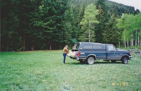 In 1997, my husband and I retraced their route. This photo shows our "covered wagon"when we stopped for lunch between Birch Creek and Argenta. My husband is the sandwich maker at the tailgate of our pickup.