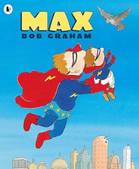 Max is born into a family of superheroes, but he can’t fly. By the time he’s old enough to go to school, he’s just, “an ordinary boy with a cape and a mask . . .” He gets teased and belittled, and then one morning, he’s the only one to see a baby bird fall from its nest and he FLIES to save it!