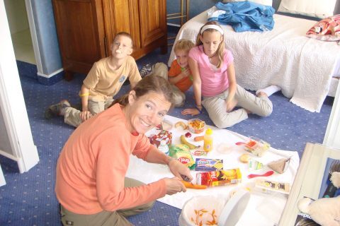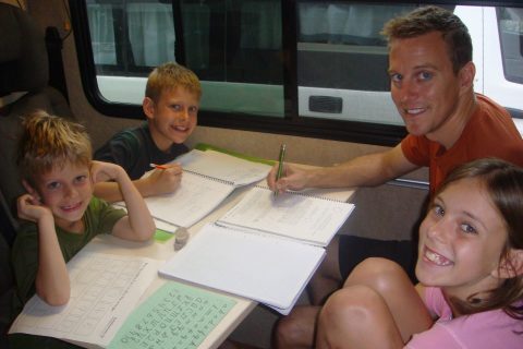 This caption was originally titled, “Kids having fun doing homework in campervan!” Yeah, right!