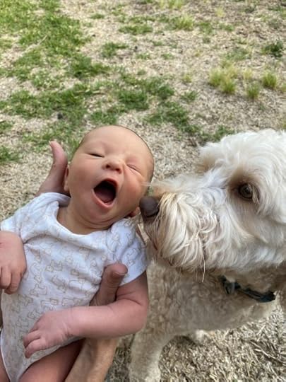 His name is River, and we are enchanted. Ever since our grandson came into this world on April 8th, my world of walking the dog and editing my manuscript and answering emails and doing basic daily tasks has faded next to the primary goal of when I can get myself back to the River. Leon Bridge’s lyrics repeat . . . take me to your River, I wanna go . . . Alayna, my daughter now a mother, spent most of her childhood growing up next to the Colorado River (though it’s called Lake Austin since it’s dammed up at both ends). Now Clay and I live beside a river once again, though this time it’s called Lady Bird Lake. Maybe that’s why I like his name so much. Or maybe his name could have been Horace Fankfurter Fartsalot and I would have been just as enchanted because just look at this boy.