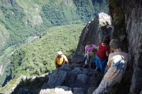 Yes, we took our three kids, including a six-year-old, up this skinny, treacherous path, climbing 1200 feet to the top of Waynu Picchu