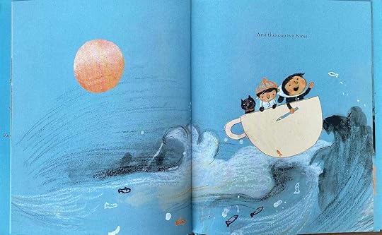 We turn the page and are transported, with the kids, in their cup. It makes me think about my own “”familiars,” and how they are my home just as surely as the walls and roof. I put this as a January, New Year, pick because it is about new beginnings, and hope. It also inspires me to connect with those in my city who are recent immigrants and listen to their stories, like boats that have carried them to our foreign shores.