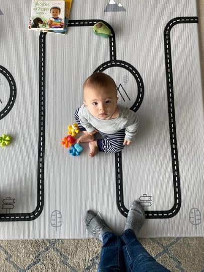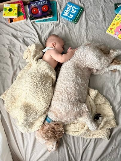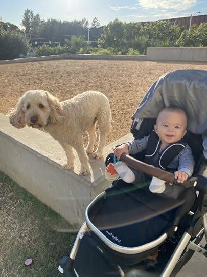 . . . make sure his diaper is clean, and he is content. There is so much new to encounter. Clothes to wear (so exhausting) and dogs to meet, but he takes them all in stride with very little fuss.