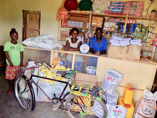 Before we left, we took a look at the new store her parents built in front of their home. About two years ago, before Scholastic bought our book, her family started forming bricks from red dirt and baking them in the sun. Today, the store is finished. In addition to generating income for her family, it provides much needed goods for the community.