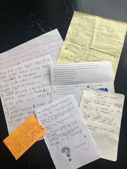 On June 19th I fly to Rwanda. In addition to answering her reader’s questions, Rebeka will also give a tour of her school and her home and introduce her family and friends. A little backstory: to have questions about the book we needed readers, and we wanted young ones. In what I can only call a miracle, within 24 hours of hatching the idea I had ten ready and willing kids, and my publisher was able to get me a few more advanced reader copies (thank you Scholastic!). A months later, my readers brought their unique perspectives and curiosity and notes to my dining room table. (I had a few who came early or late or couldn’t make it to our meeting, so I got their questions separately.)