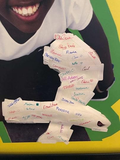 The big day arrived, the day to celebrate the launch of Her Own Two Feet: A Rwandan Girl’s Brave Fight to Walk, the day I had been dreaming about for so many years. I had a list of things to bring. Retractable poster banner? Check. Chance Comes Once rubber bracelets? Check. Markers and stickers so people could “sign” Rebeka’s cast? Check.