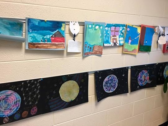 It takes a special kind of teacher to create that kind of culture in her classroom, and it takes a superhero kind of teacher to squeeze all the juicy goodness out of a book, doing art projects and tying in vocabulary words and going above and beyond to bring in local media to do a story in the paper, and setting up an author visit so we could talk to each other.