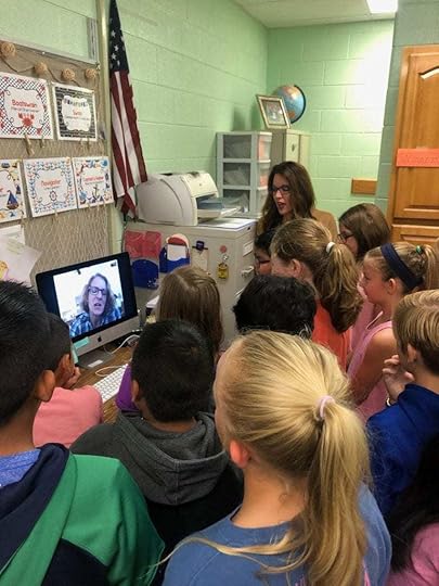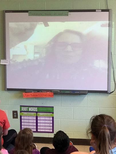 As the visit went on, Mrs. Proffitt explained that since her class was so large, most of the students sat at their desks and watched me on a large screen. Smaller groups rotated through to talk and ask questions via her laptop, and those were the kids I was seeing. I never heard a complaint. I never saw a push or a shove as students gathered in small groups around the laptop and a few minutes later went back to their desks to make room for more. They raised their hands, they waited their turn, and yet they were still kids. They jumped up and down with excitement and sometimes burst out laughing.