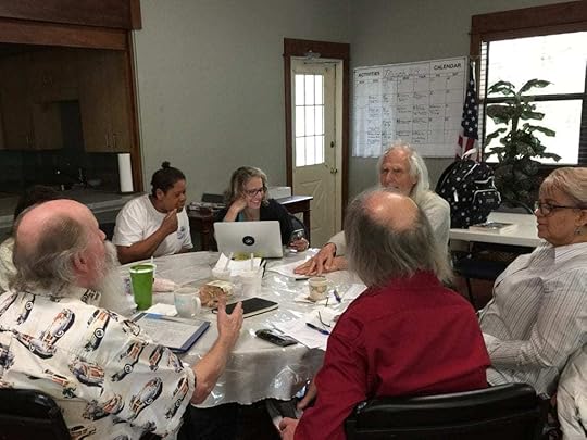 Meredith talking to a group of writer from the Badgerdog Living Well Workshop