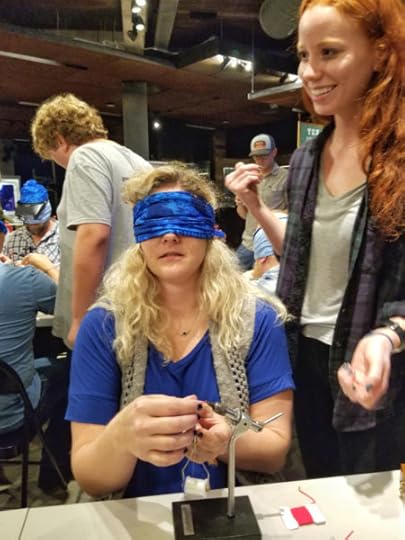 Adrienne Barnett prepares to tie a San Juan worm in the Iron Fly blindfold challenge.Photo by Aaron Reed