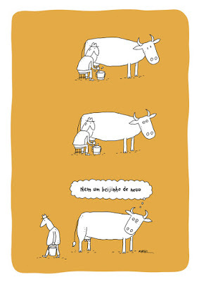Ueba! Recebi Menção Honrosa no 44º Salão Internacional de Humor de Piracicaba na categoria Tiras. O desenho também está concorrendo ao Prêmio Júri Popular. A vaca não ganhou beijinho mas pode ganhar o seu votinho, é fácil e nem dói: