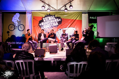 Registro da mesa "Não é tão engraçado quanto parece!" na Bienal de Quadrinhos de Curitiba. Da esquerda para a direita: Rafael Corrêa, Benett, Yuri Alhanati, Adão Iturrusgarai, Paixão, Arnaldo Branco e Allan Sieber foto: Flavio Rocha https://www.flickr.com/photos/bienald...