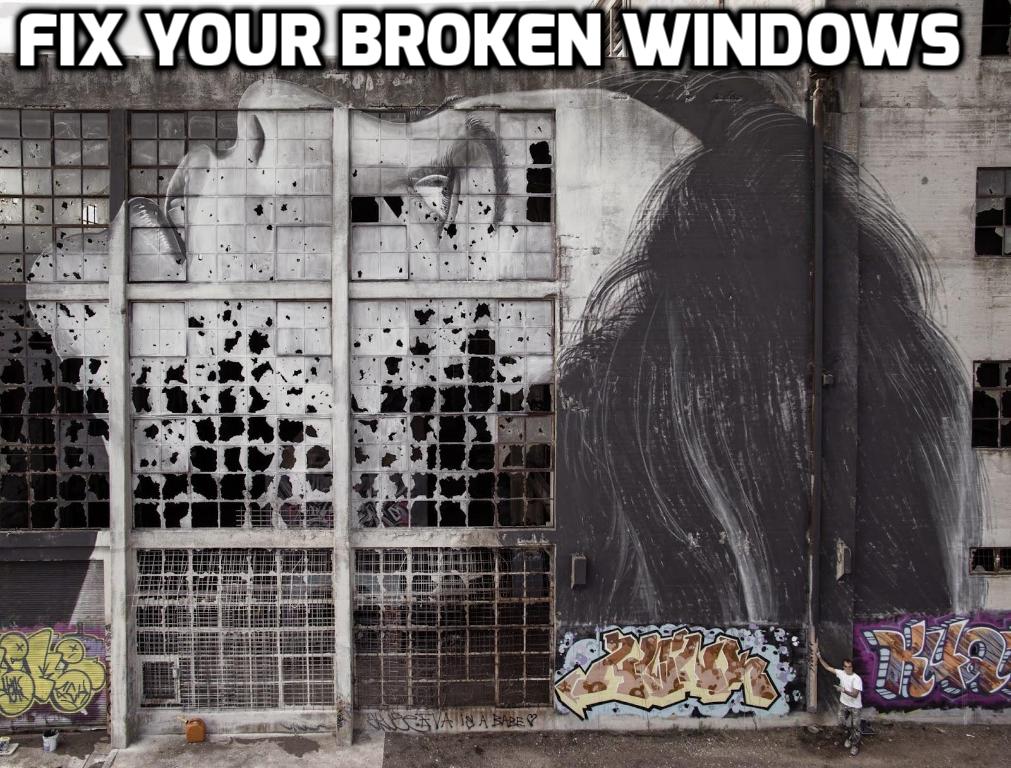 “If a window is broken and left unrepaired, people walking by will conclude that no one cares. Soon, more windows will be broken, and the sense of anarchy will spread from the building to the street, sending a signal that anything goes.”