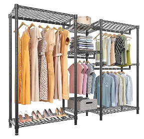 Wire Garment Rack Heavy DutyClothes Rack Metal with Shelves, Freestanding Portable Wardrobe Closet Rack for Hanging Clothes 74.4″ L x 17.7″ W x 76.8″ H, Max Load 780LBS, Black