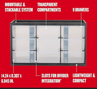 Storage Organizer Bin System9 Compartment, Plastic